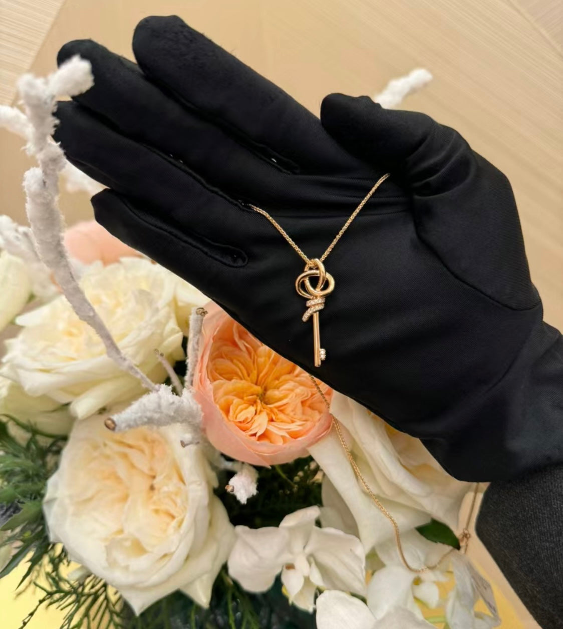 18K T Keys Woven Diamonds Medium Necklace